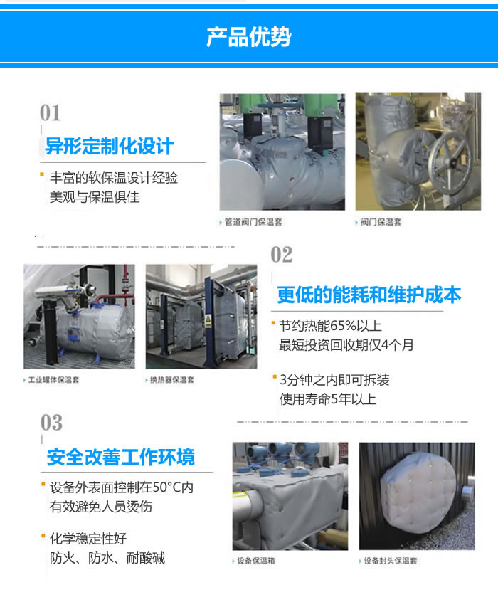 1、節(jié)約電能:經(jīng)一線測(cè)試本產(chǎn)品的平均節(jié)電率都在20%-35%。其經(jīng)濟(jì)效益顯著,能為各企業(yè)減少不必要的開(kāi)支。直接為企業(yè)增效,降低經(jīng)營(yíng)成本,提高競(jìng)爭(zhēng)力。據(jù)測(cè)算,僅節(jié)電一項(xiàng),約不到一年就可收回保溫套的成本。